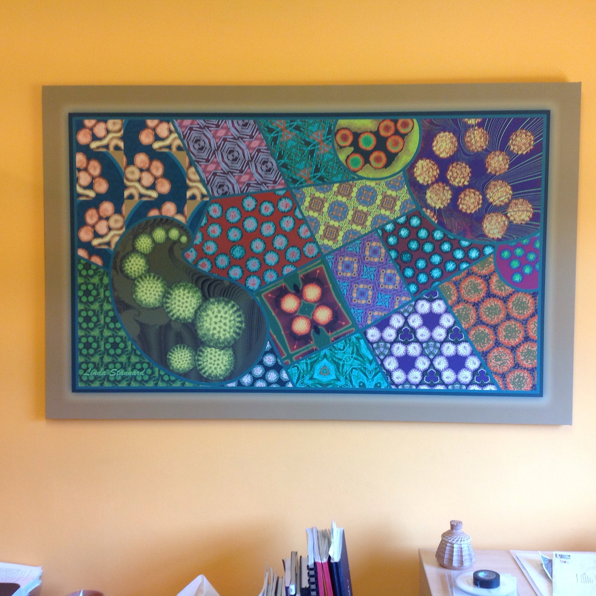 So Anna-Lise Williamson commissioned her to beautify the rather sterile environs of the Institute of Infectious Disease and Molecular Medicine (IDM), with the results that you see below. Her corridor and offices now look rather nice!