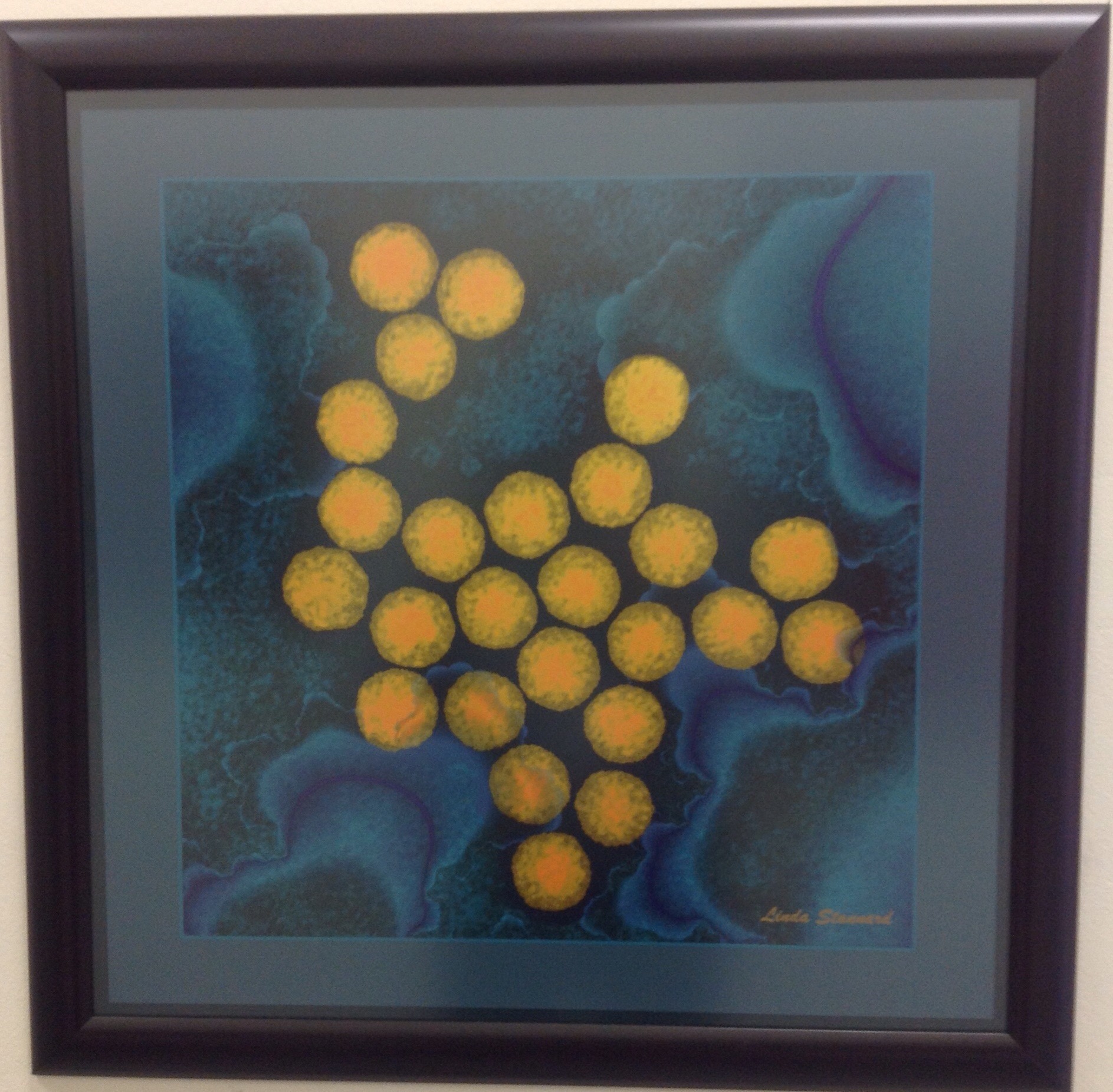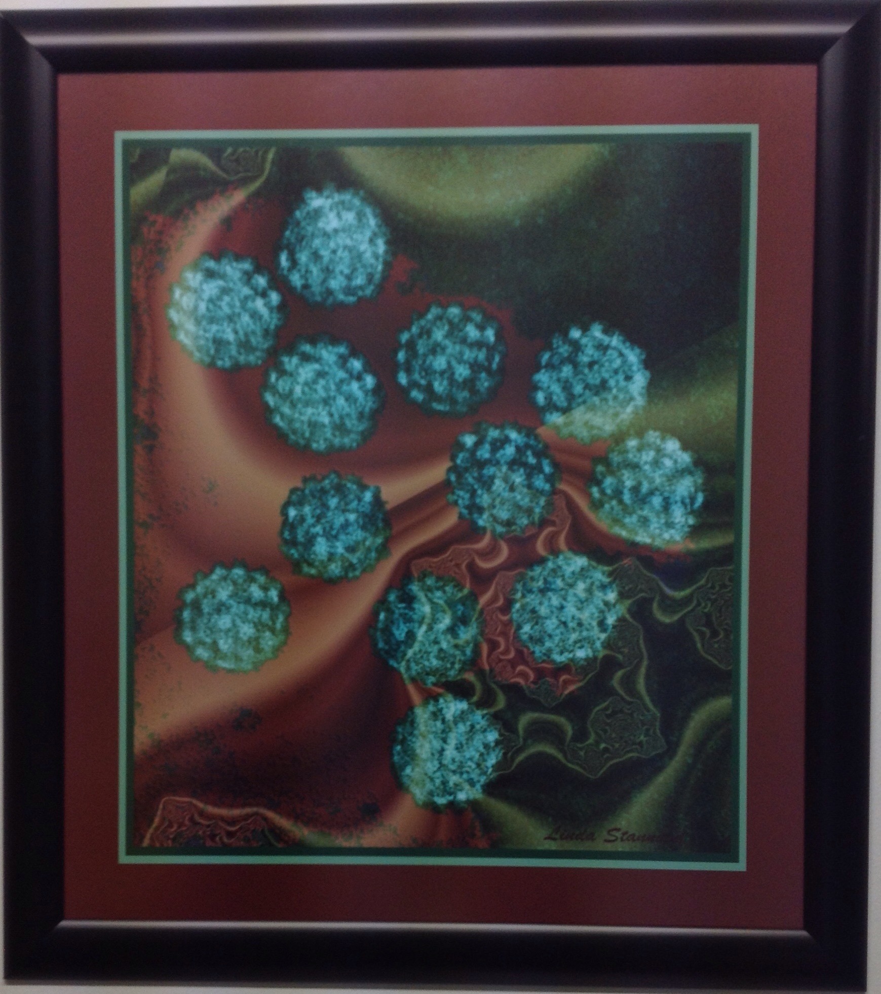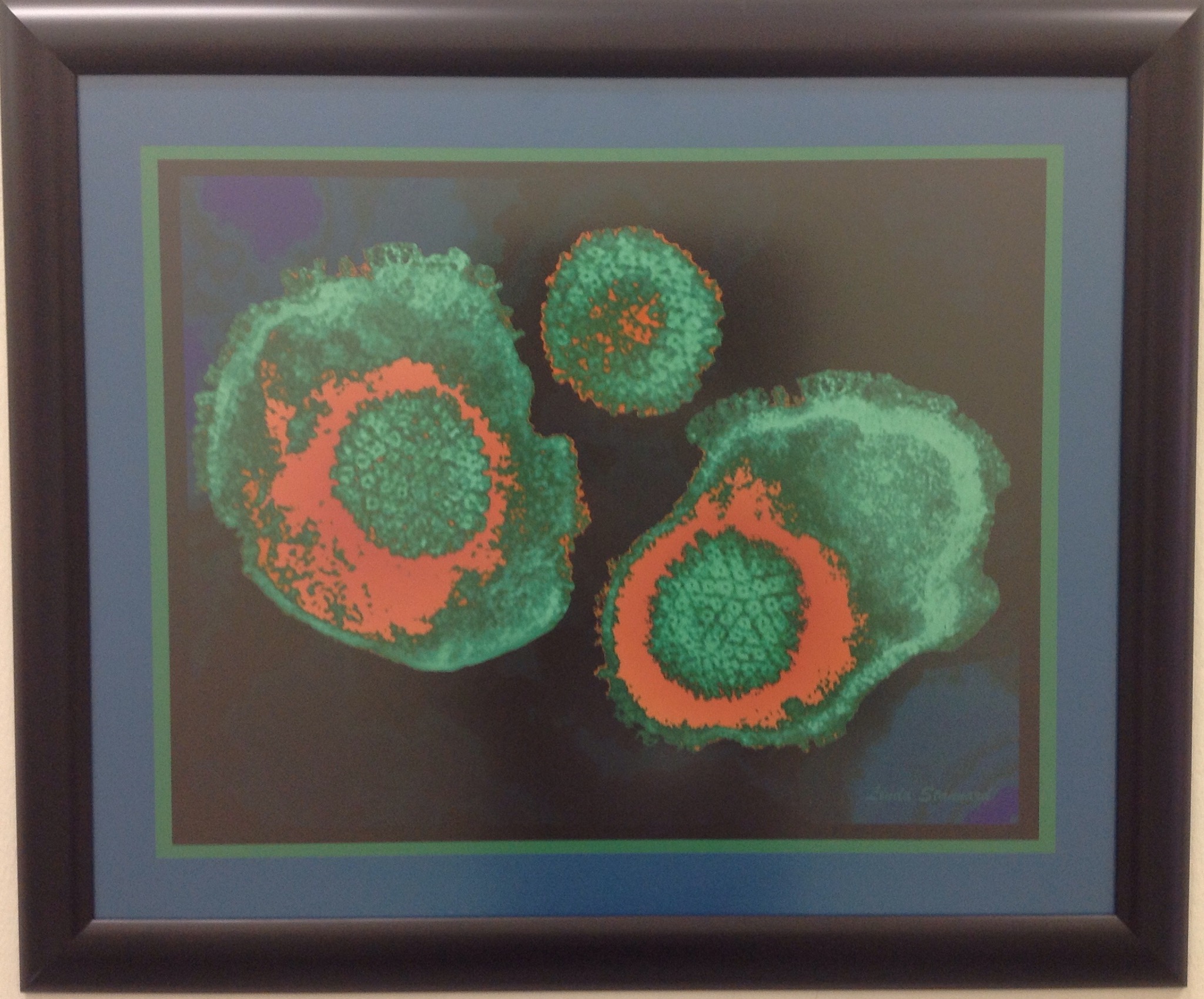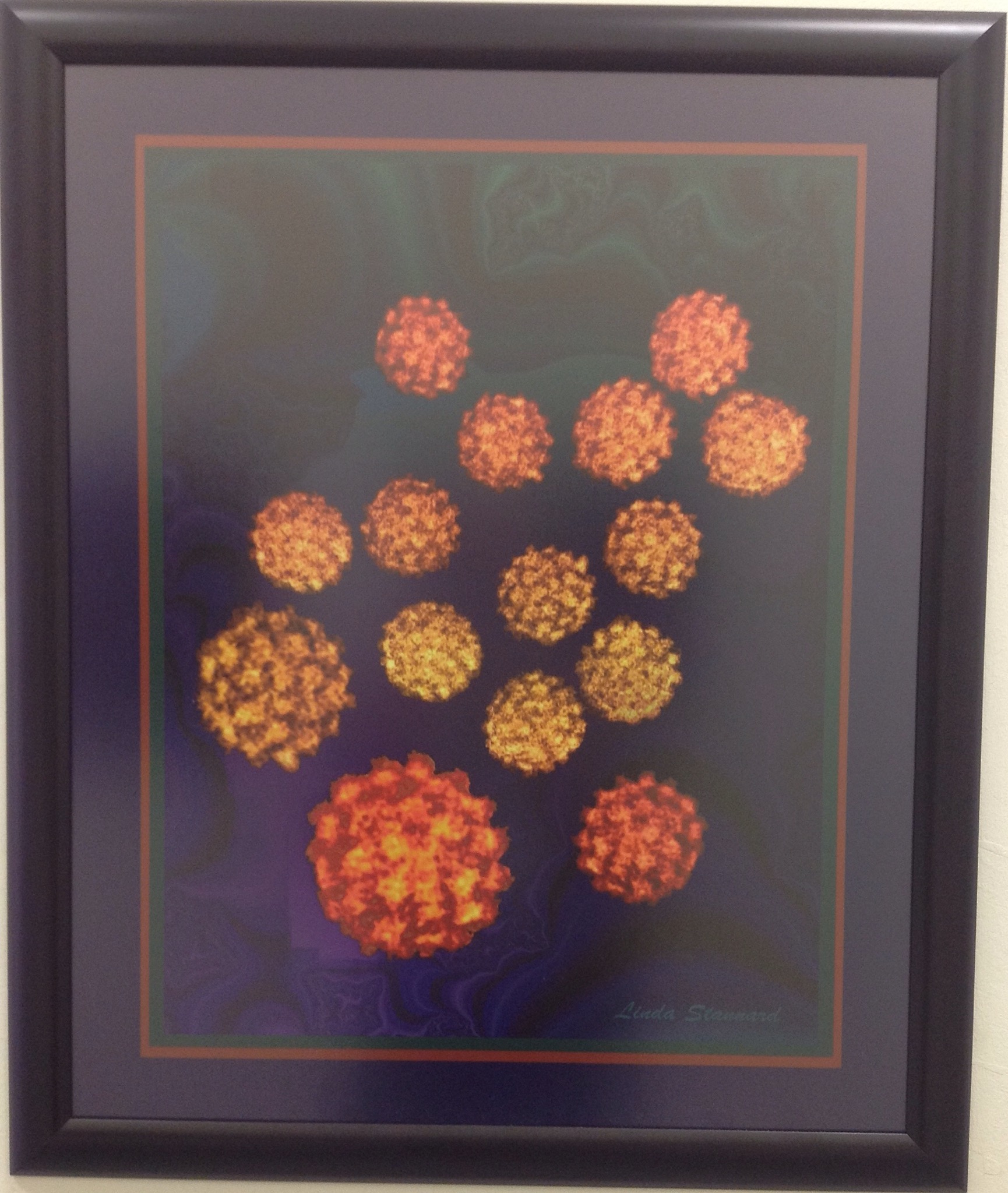Dr Linda Stannard was a virologist and electron micrsocopist of some repute, here at the University of Cape Town, when she retired some years back. She worked on a lot of interesting viruses, thanks to the diagnostic Virology lab at UCT’s Medical School as well as an eclectic mix of colleagues, and managed to create some stunning images of everything from TMV to poxviruses, herpesviruses, poliovirus, rotavirus, hepatitis B and adenoviruses.